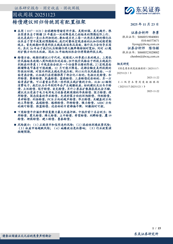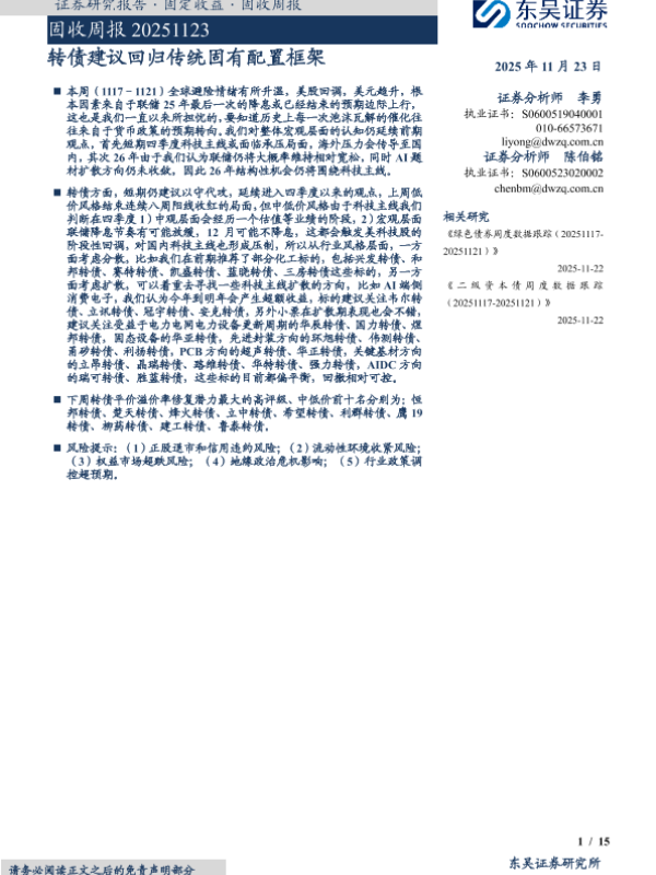 可转债 市场回顾 科技主线 固定收益 投资策略