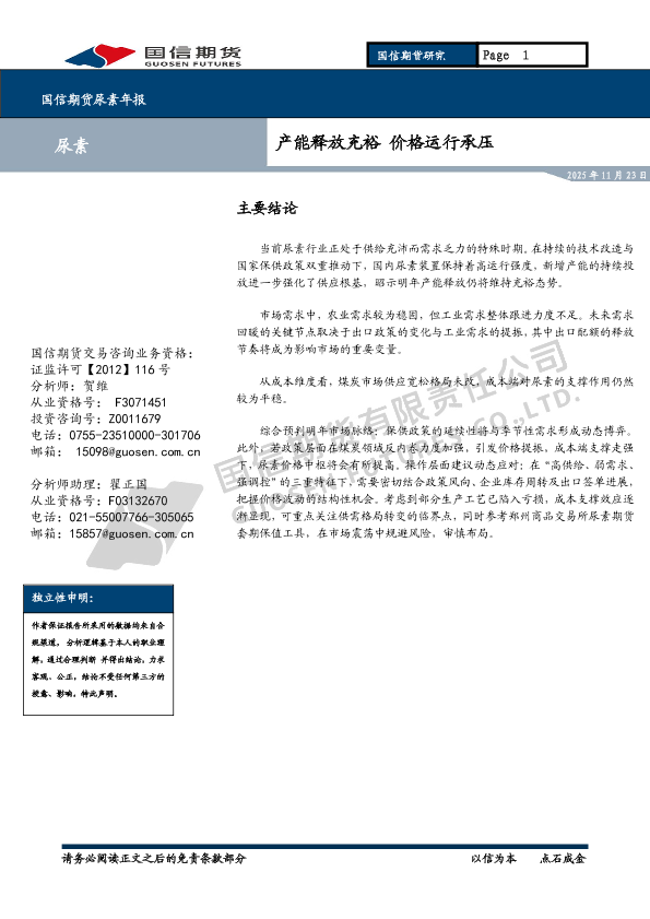 【国信期货】【202511】尿素年报_产能释放充裕_价格运行承压-15页