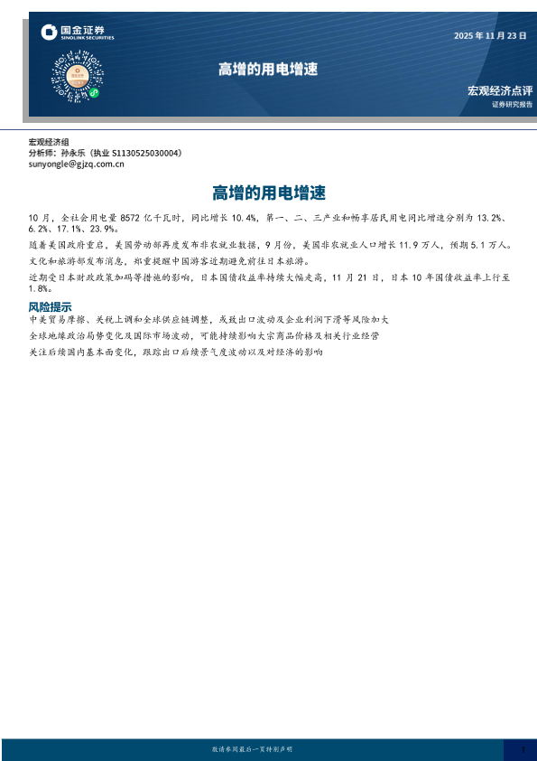 【国金证券】【202511】宏观经济点评_高增的用电增速-7页