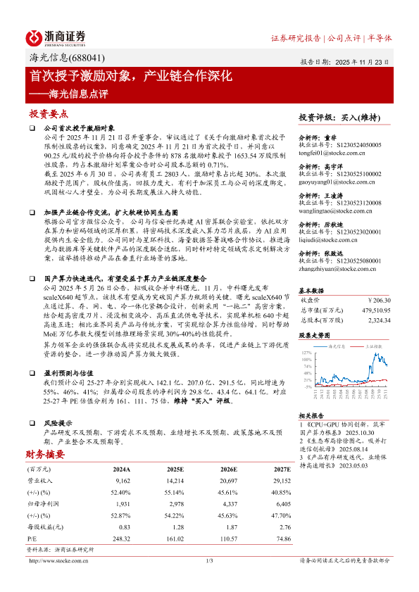 【浙商证券】【202511】首次授予激励对象,产业链合作深化——海光信息点评-3页