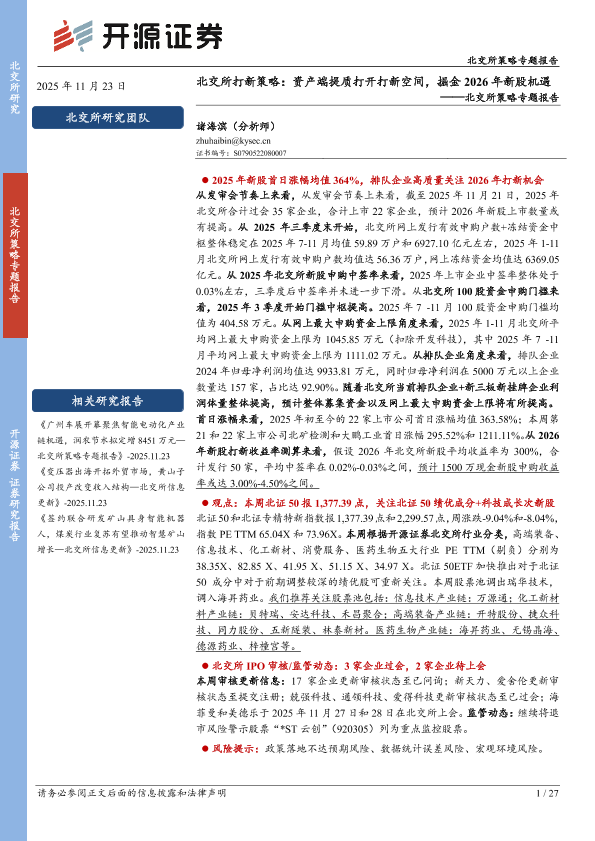 【开源证券】【202511】北交所打新策略:资产端提质打开打新空间,掘金2026年新股机遇-27页