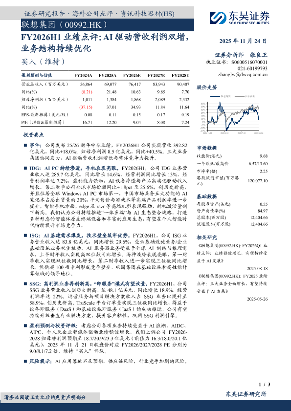 【东吴证券】【202511】FY2026H1业绩点评:AI驱动营收利润双增,业务结构持续优化-3页