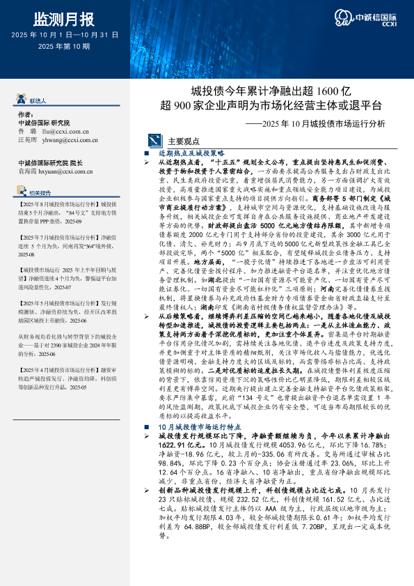【中诚信国际】【202510】2025年10月城投债市场运行分析_城投债今年累计净融出超1600亿_超900家企业声明为市场化经营主体或退平台-17页