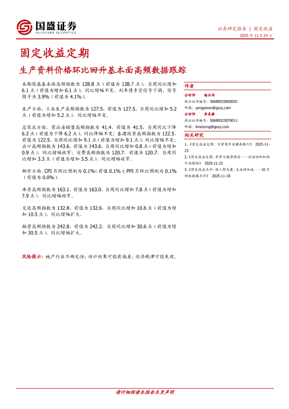 【国盛证券】【202511】固定收益定期_基本面高频数据跟踪——生产资料价格环比回升-20页