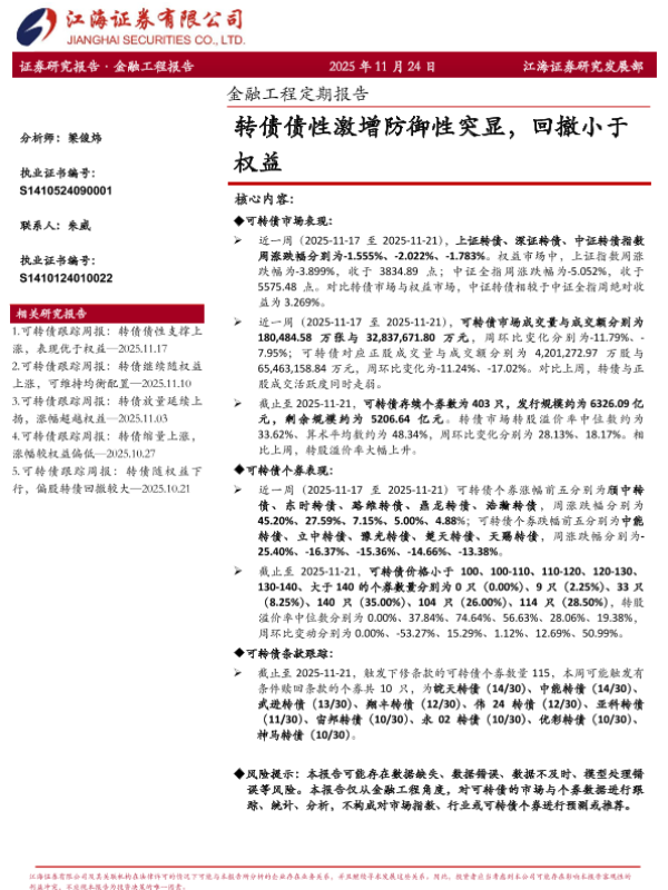 【江海证券】【202511】转债债性激增防御性突显,回撤小于权益-12页
