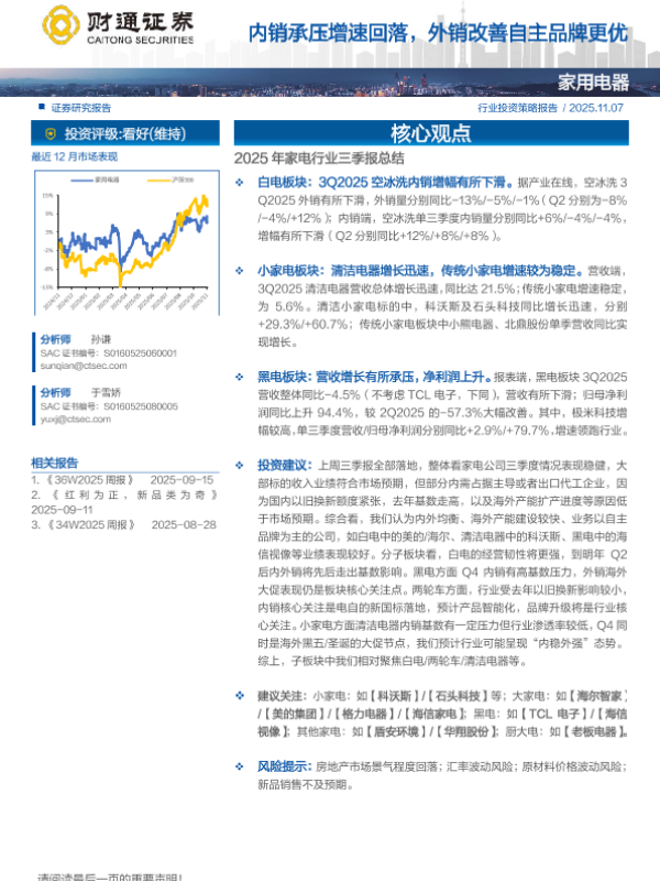【财通证券】【202511】2025年家电行业三季报总结-19页