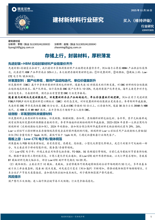【国金证券】【2024】建材新材料行业研究_存储上行_封装材料_厚积薄发-12页