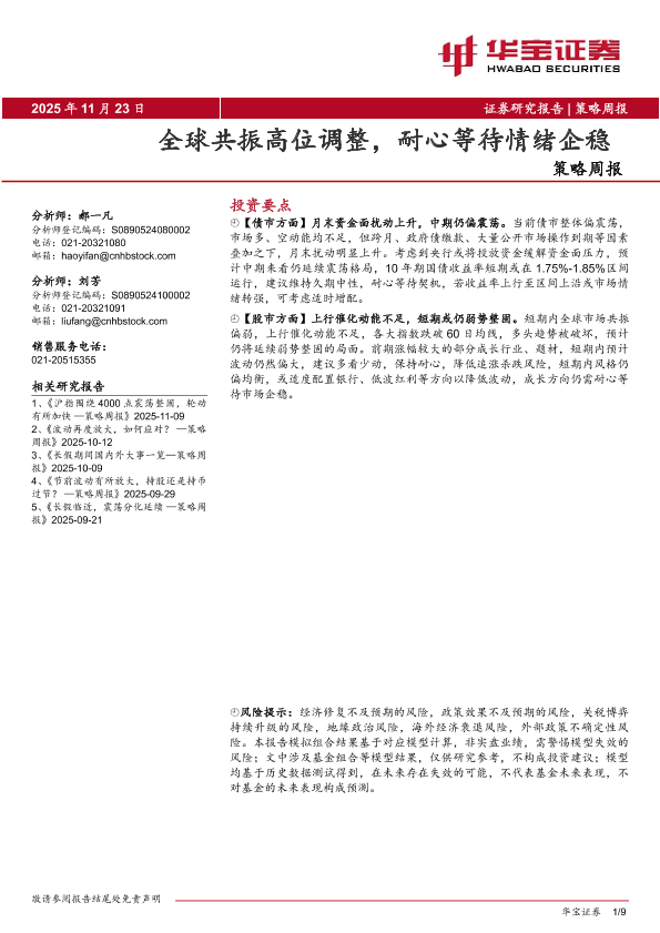 【华宝证券】【202511】全球共振高位调整,耐心等待情绪企稳-9页