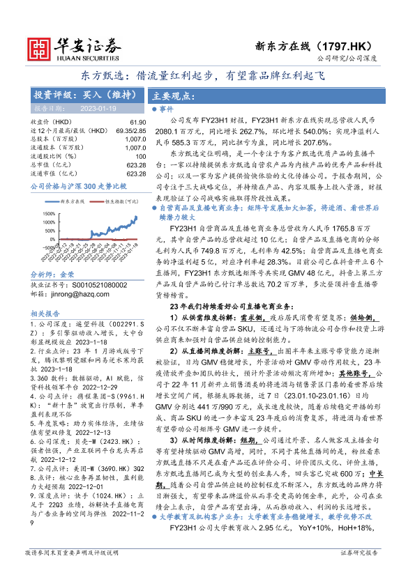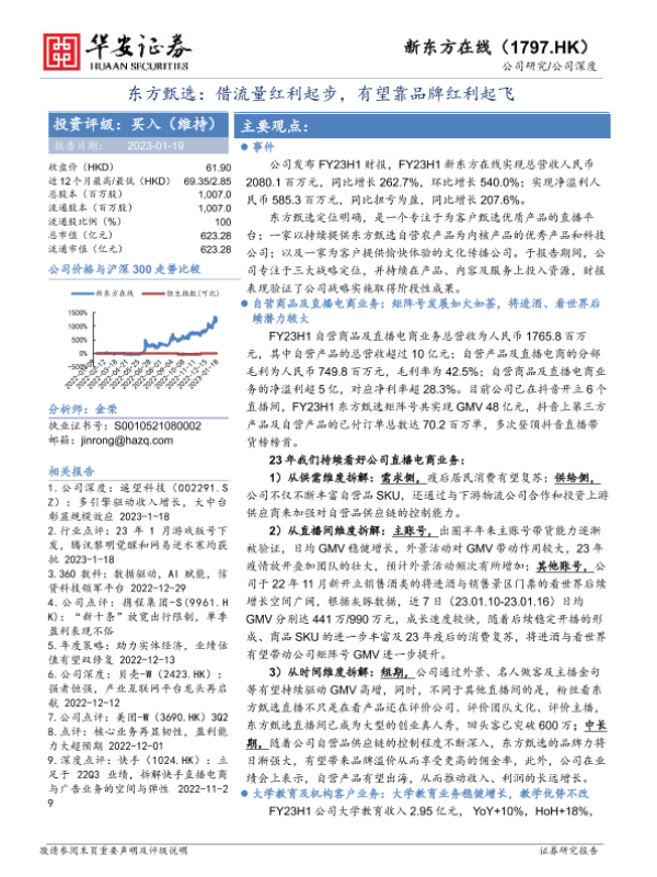 【华安证券】【20230119】新东方在线(01797)东方甄选:借流量红利起步,有望靠品牌红利起飞-16页