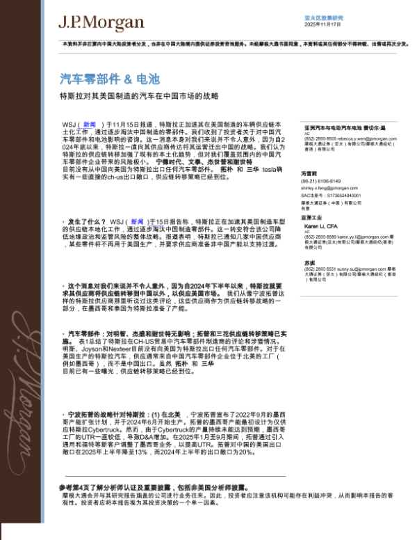 【J.P. Morgan】【202511】特斯拉美国产车型的“去中国化”战略-9页