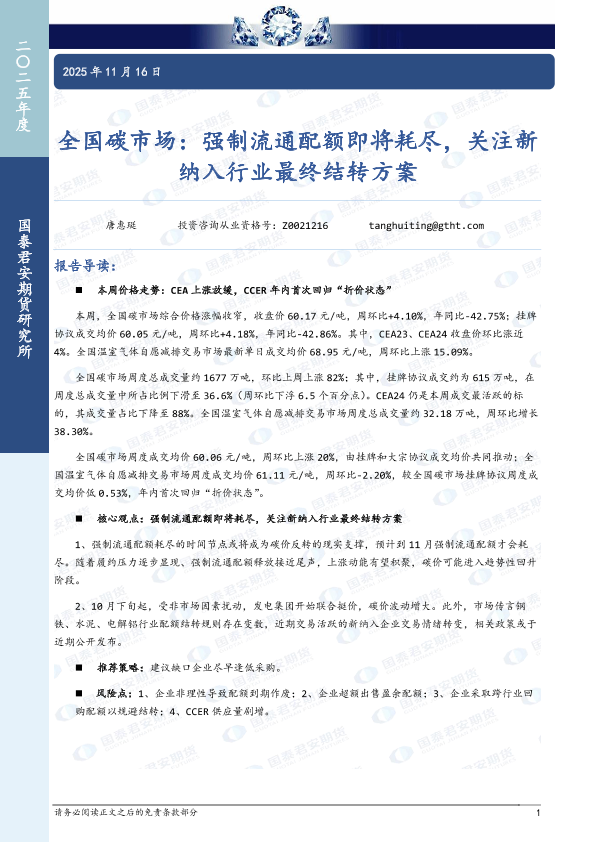 【国泰君安期货】【202511】全国碳市场:强制流通配额即将耗尽,关注新纳入行业最终结转方案-5页
