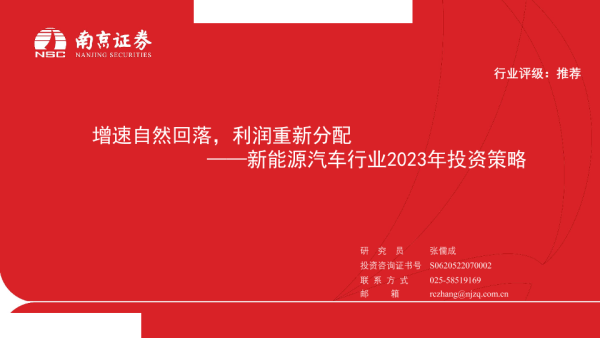【南京证券】【20230101】新能源汽车行业2023年投资策略:增速自然回落,利润重新分配-30页