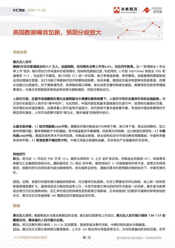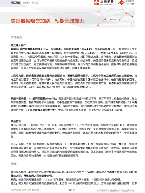 【华泰期货】【202511】外汇周报 | 美国数据噪音加剧,预期分歧放大-10页