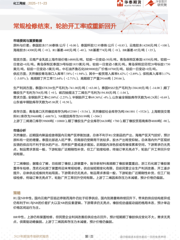 【华泰期货】【202511】化工周报 | 常规检修结束,轮胎开工率或重新回升-17页