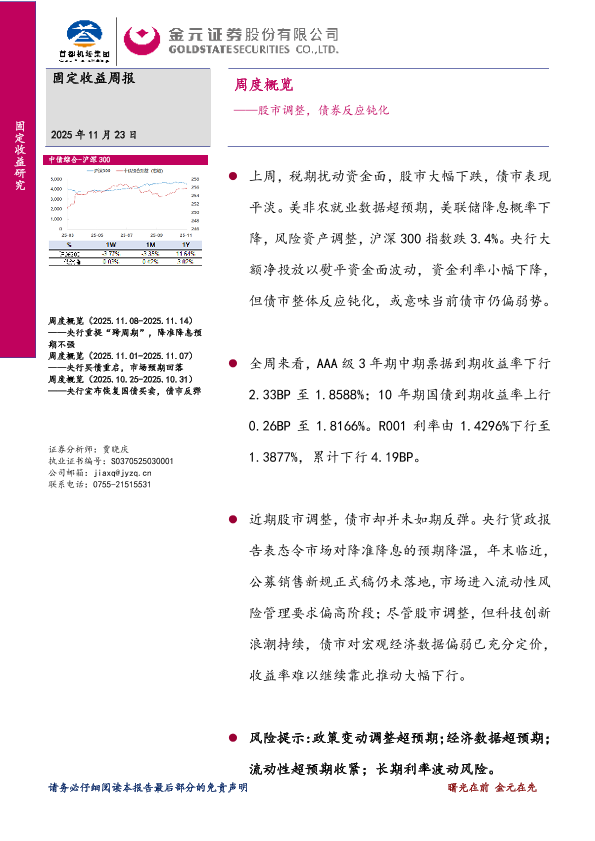 【金元证券】【202511】固定收益周报——股市调整_债券反应钝化-13页
