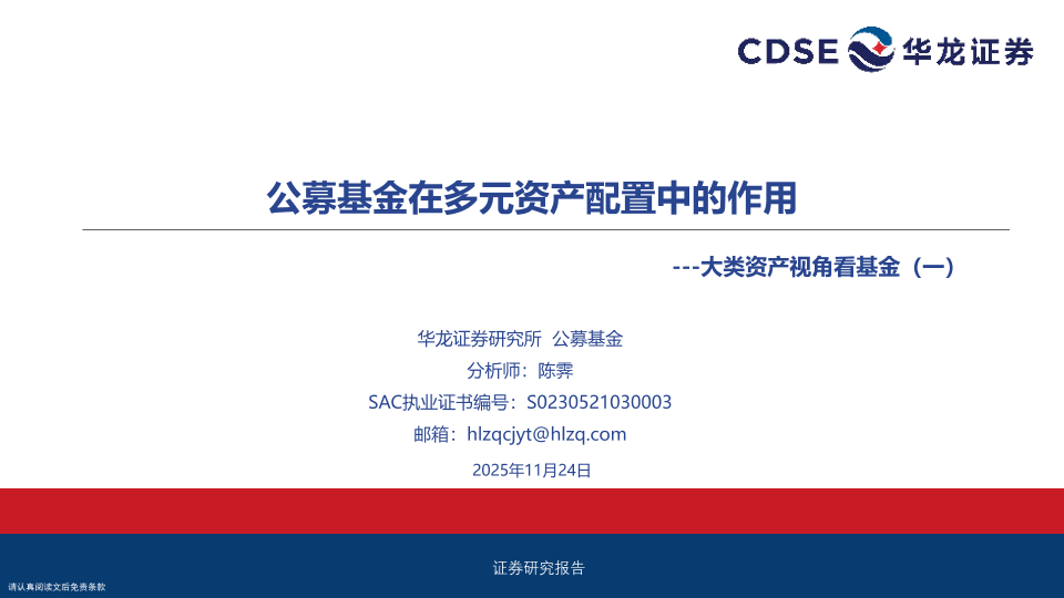 【华龙证券】【202511】公募基金在多元资产配置中的作用-24页