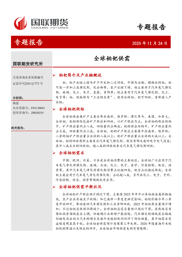【国联期货研究所】【2024】全球铂钯供需-14页
