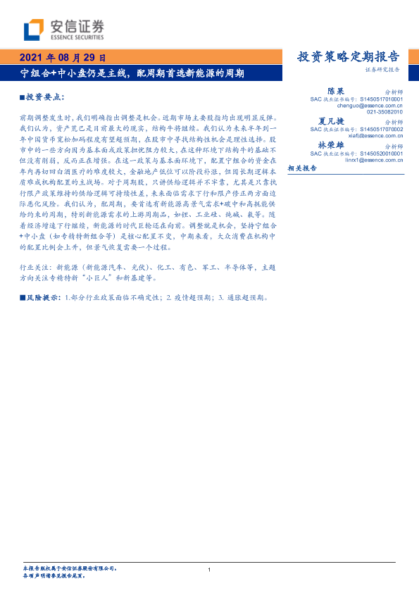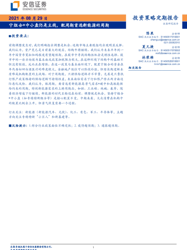 【安信证券】【20210829】投资策略定期报告:宁组合+中小盘仍是主线,配周期首选新能源的周期-19页