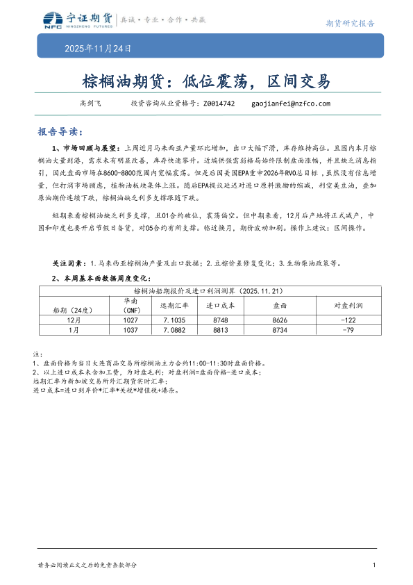 【宁证期货】【202511】棕榈油期货:低位震荡,区间交易-5页