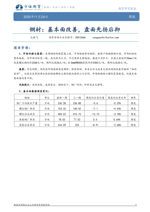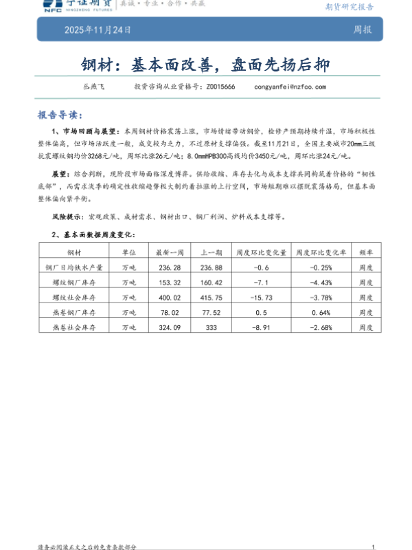 【宁证期货】【202511】钢材:基本面改善,盘面先扬后抑-5页