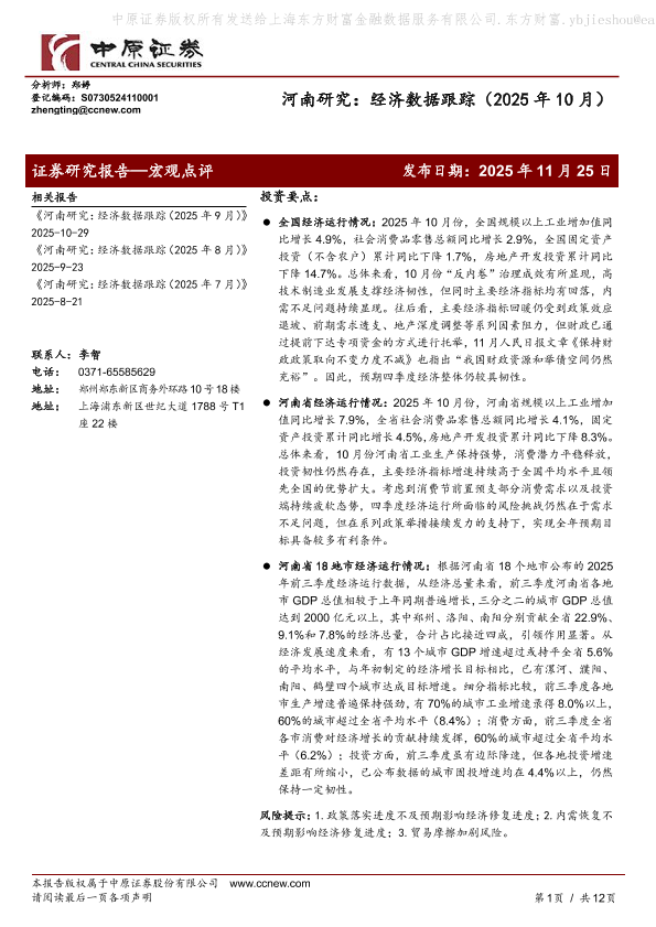 【中原证券】【202511】河南研究_经济数据跟踪(2025年10月)-12页