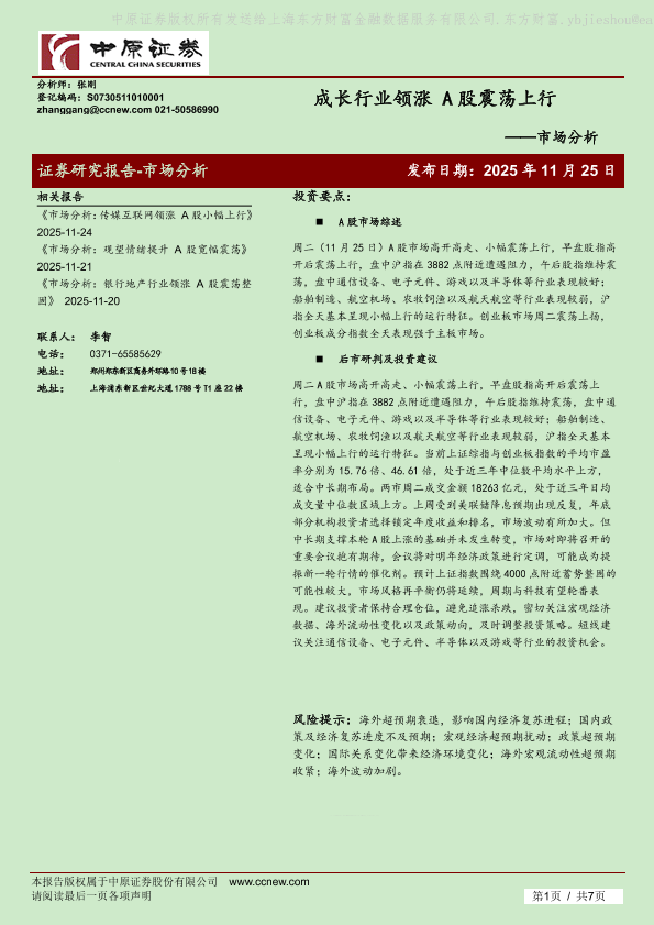 【中原证券】【202511】成长行业领涨 A股震荡上行——市场分析-7页