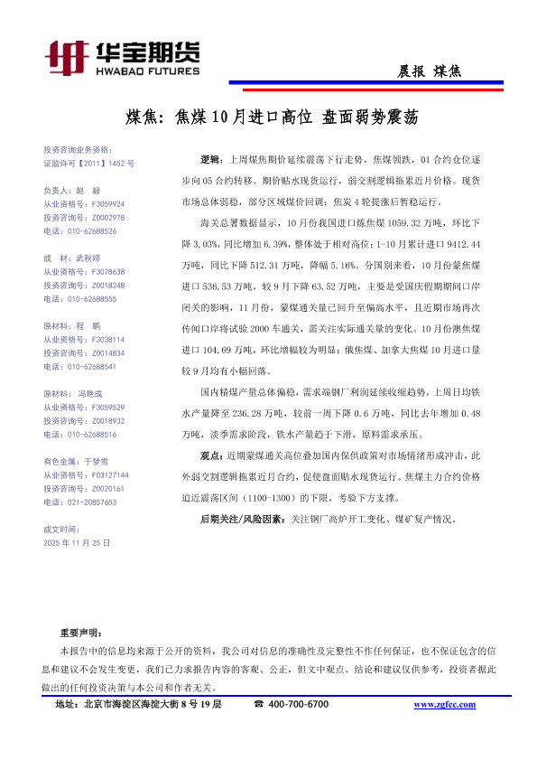 【华宝期货】【202511】煤焦_焦煤10月进口高位_盘面弱势震荡-1页