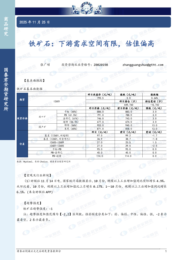 【国泰君安期货】【202511】铁矿石:下游需求空间有限,估值偏高-2页