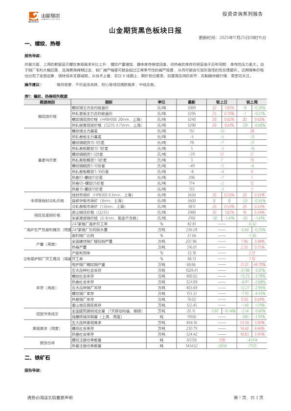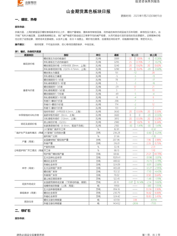 【山金期货】【202511】山金期货黑色板块日报-3页