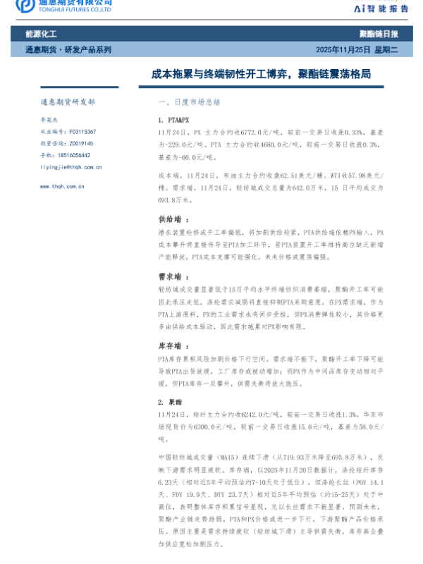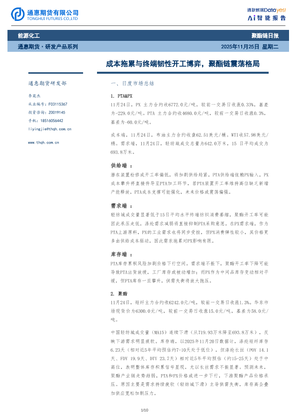 【通惠期货研发部】【202511】成本拖累与终端韧性开工博弈,聚酯链震荡格局-10页