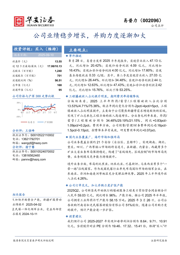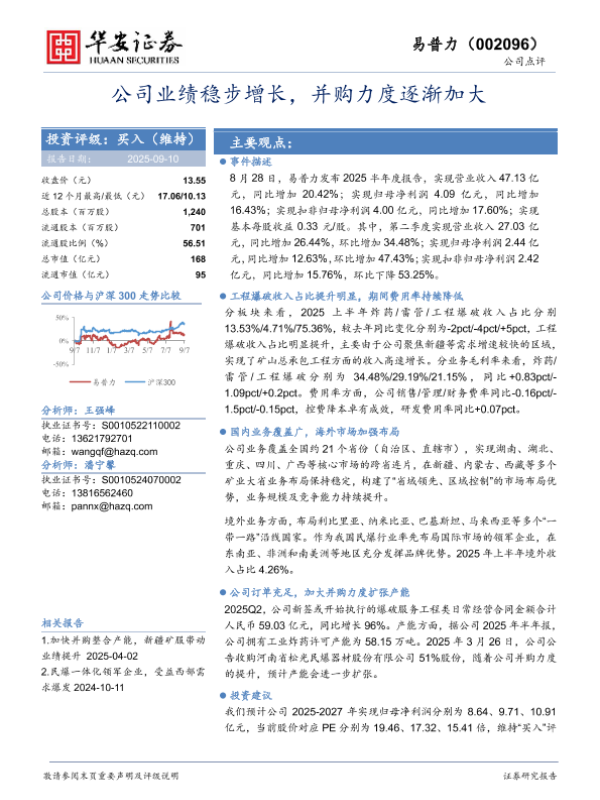 【华安证券】【202509】公司业绩稳步增长,并购力度逐渐加大-4页