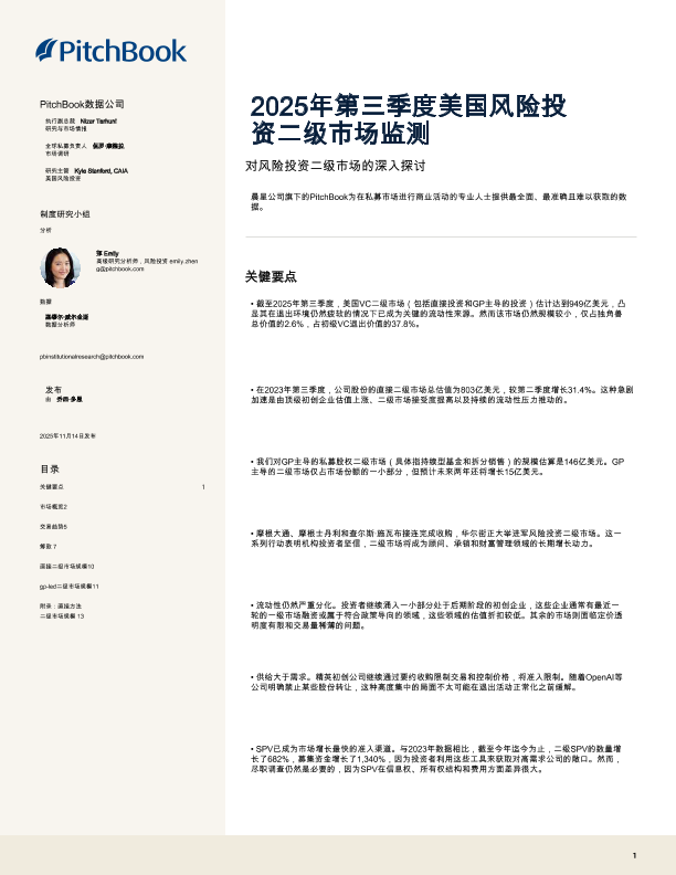 【PitchBook数据公司】【202511】2025年第三季度美国风险投资二级市场监测-14页