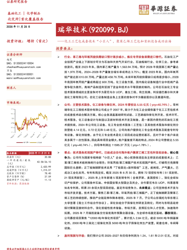 【华源证券】【202511】化工工艺包成套技术“小巨人”,聚苯乙烯工艺包和首批设备成功出海-20页