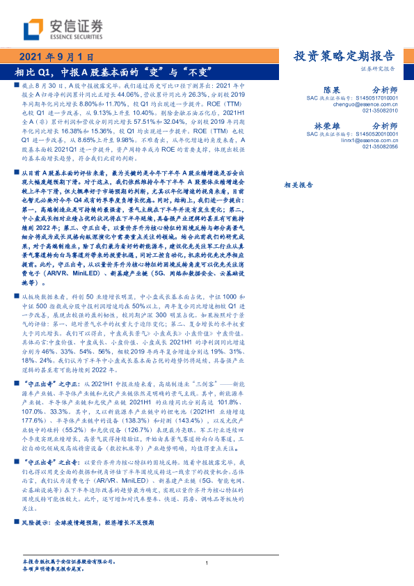 【安信证券】【20210901】投资策略定期报告:相比Q1,中报A股基本面的“变”与“不变”-29页