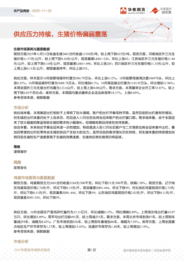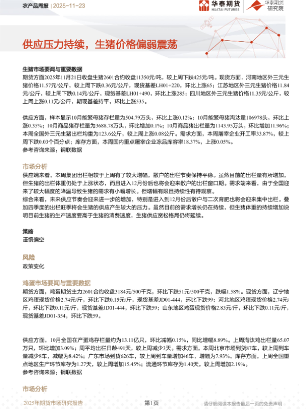 【华泰期货】【202511】农产品周报 | 供应压力持续,生猪价格偏弱震荡-10页