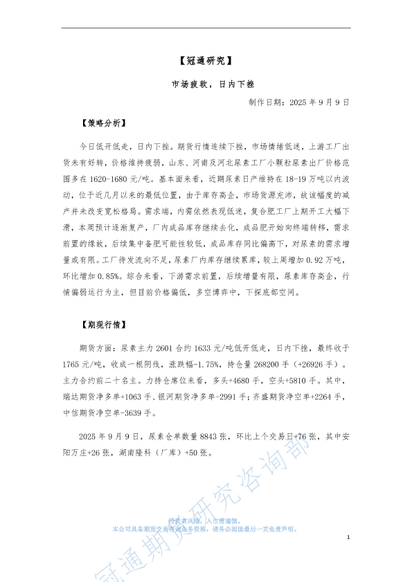 【冠通期货】【202509】市场疲软,日内下挫-4页