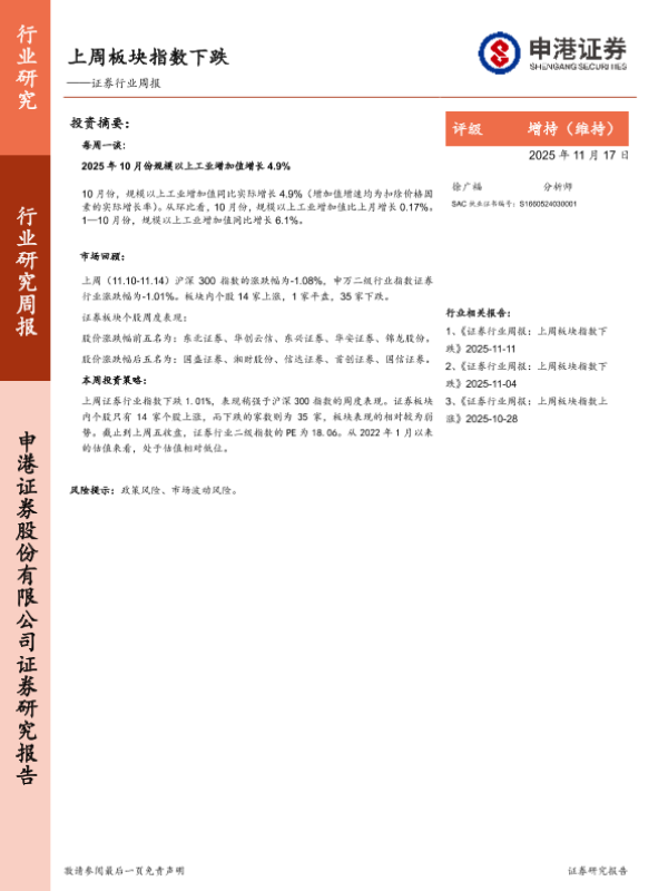 【申港证券】【202511】证券行业周报:上周板块指数下跌-7页