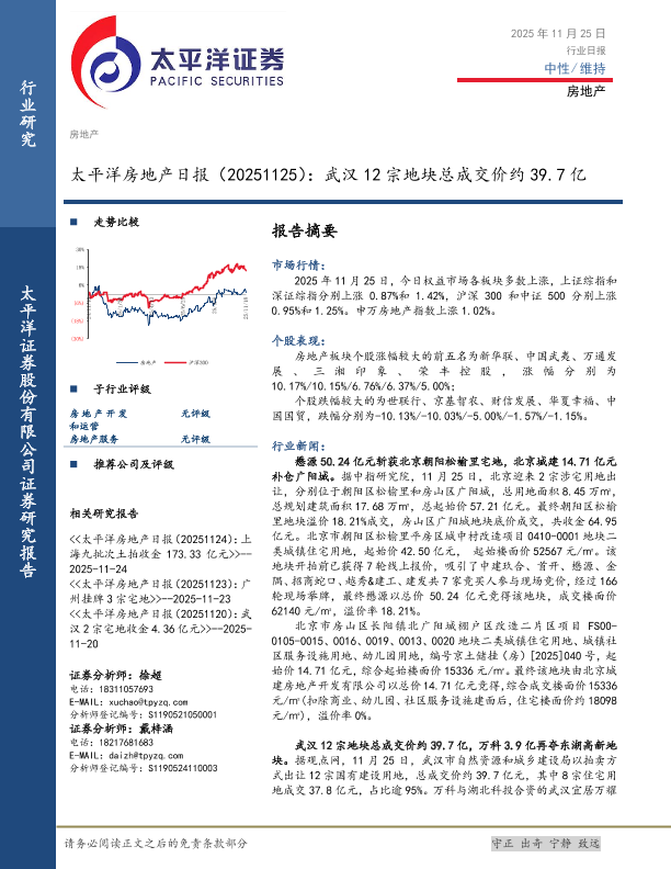 【太平洋证券】【202511】太平洋房地产日报(20251125):武汉 12宗地块总成交价约 39.7亿-4页