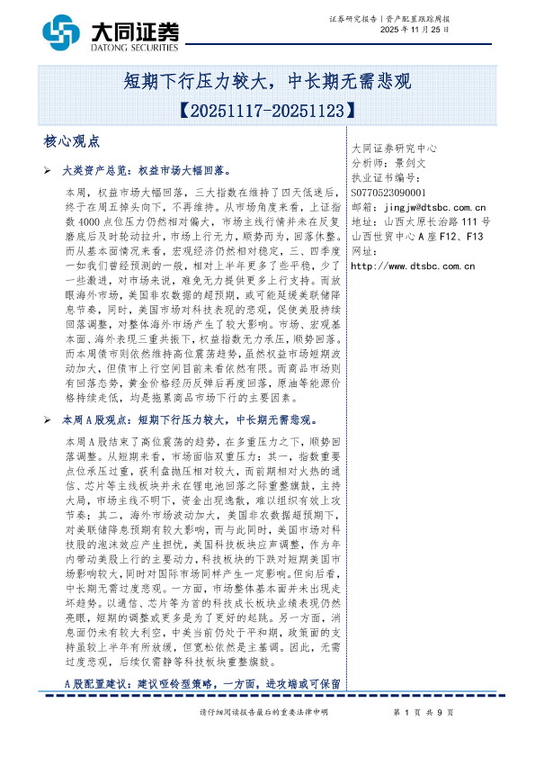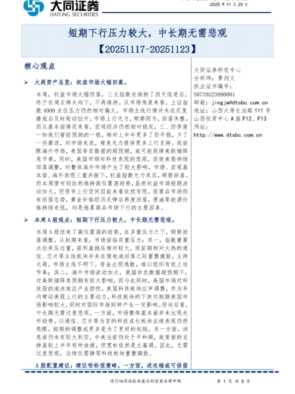 【大同证券】【202511】短期下行压力较大,中长期无需悲观-9页
