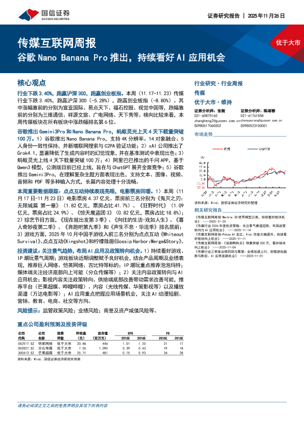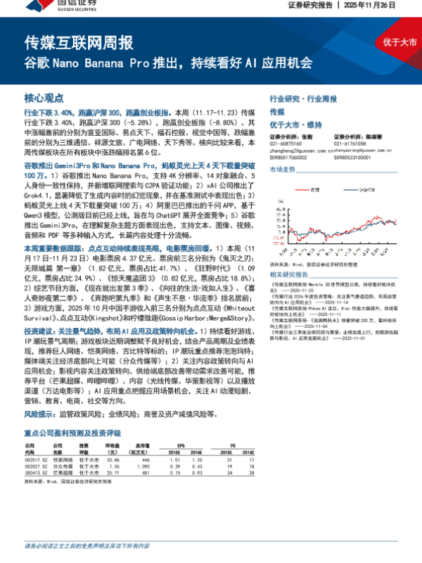 【国信证券】【202511】2025年11月26日 传媒互联网周报:谷歌Nano Banana Pro推出,持续看好AI应用机会-13页