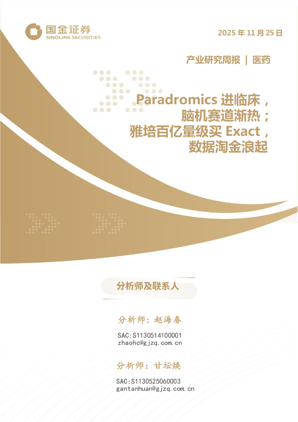 【产业研究中心】【202511】Paradromics进临床,脑机赛道渐热;雅培百亿量级买Exact,数据淘金浪起-20页