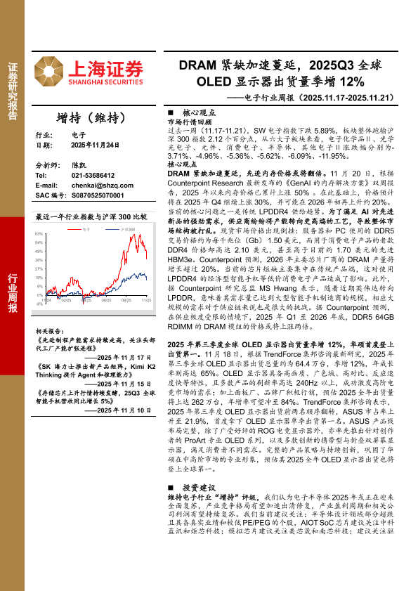 【上海证券】【202511】DRAM紧缺加速蔓延,2025Q3全球OLED显示器出货量季增12%-3页