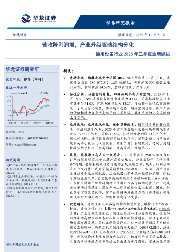 【华龙证券】【2025】营收降利润增,产业升级驱动结构分化——通用设备行业2025年三季报业绩综述-26页