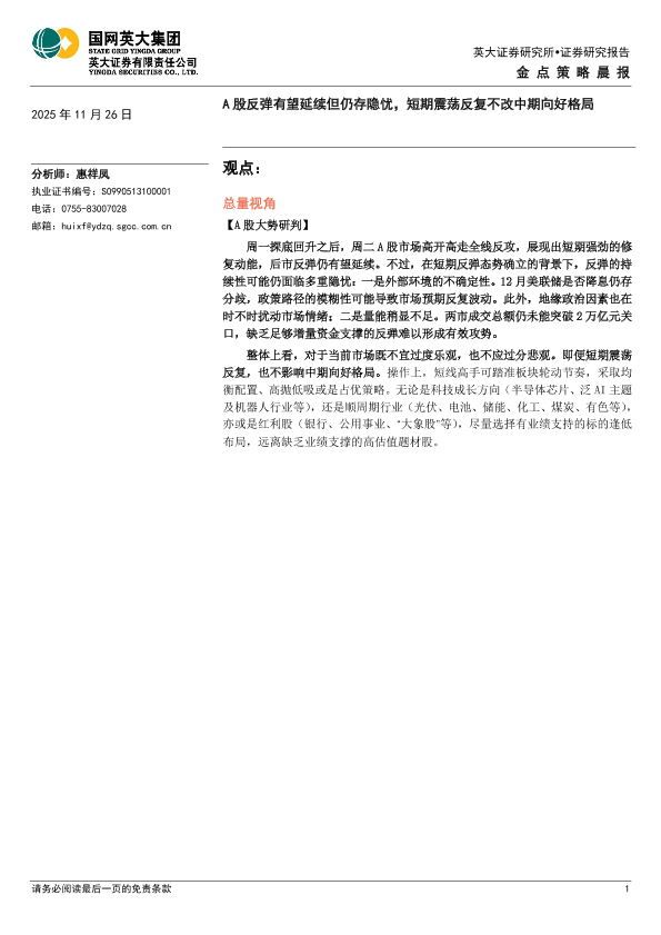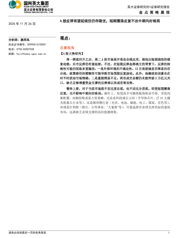 【英大证券】【202511】A股反弹有望延续但仍存隐忧,短期震荡反复不改中期向好格局-4页