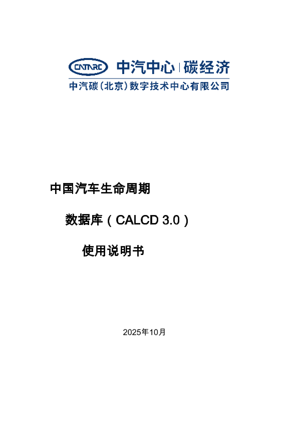 【中汽碳(北京)数字技术中心有限公司&中国汽车技术研究中心有限公司】【202510】中国汽车生命周期数据库(CALCD 3.0)使用说明书-75页