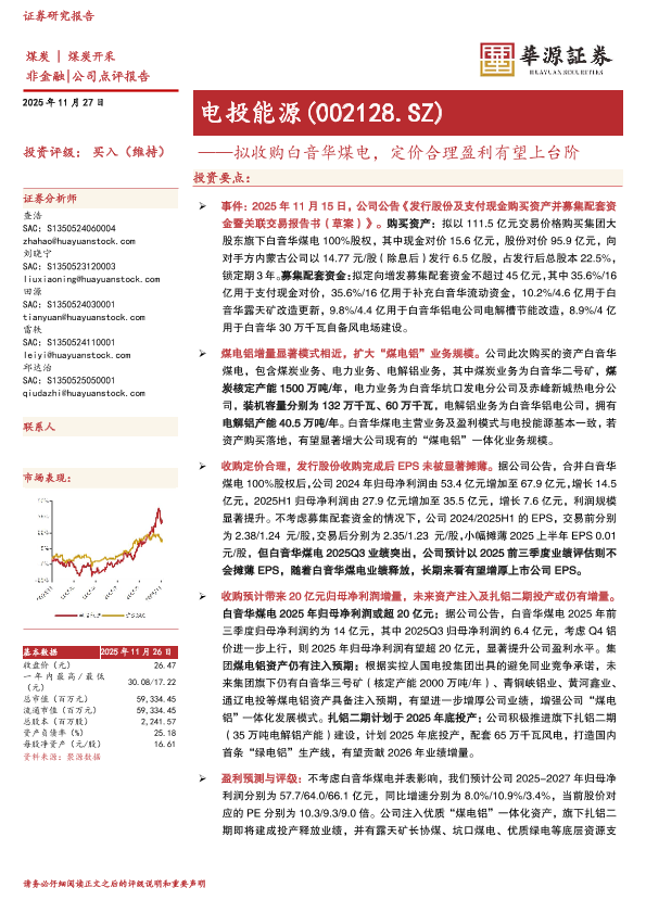 【华源证券】【202511】拟收购白音华煤电,定价合理盈利有望上台阶-4页