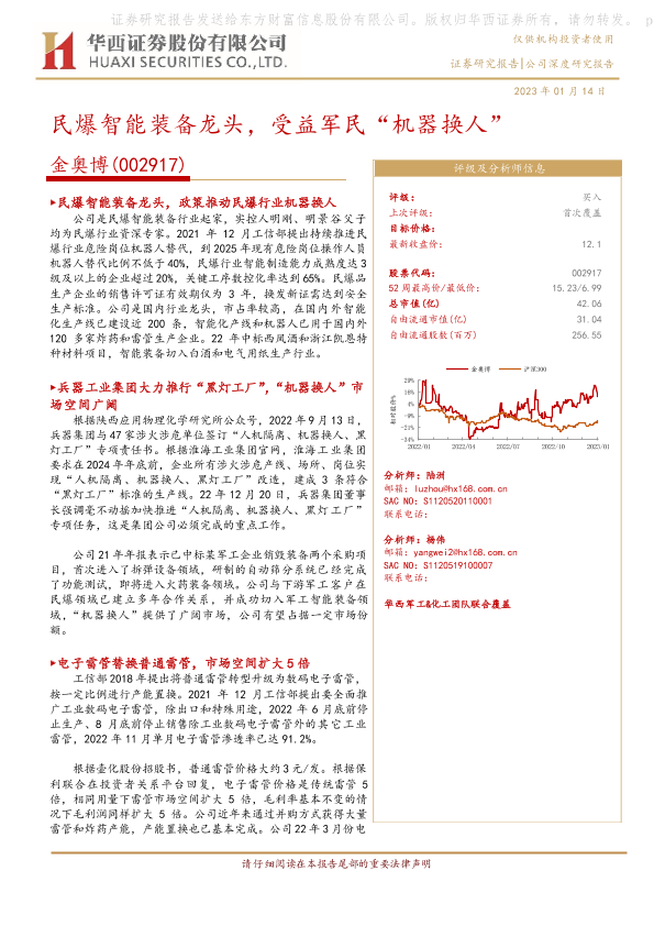 【华西证券】【20230114】民爆智能装备龙头,受益军民“机器换人”-23页