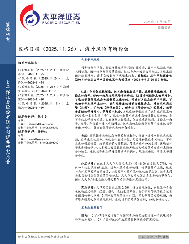 【太平洋证券】【202511】策略日报(2025.11.26):海外风险有所释放-12页