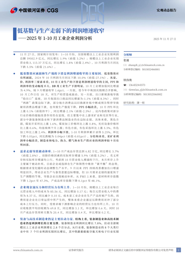 【银河证券】【202511】低基数与生产走弱下的利润增速收窄——2025年1-10月工业企业利润分析-5页