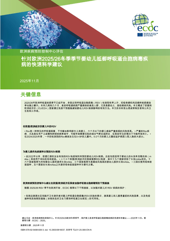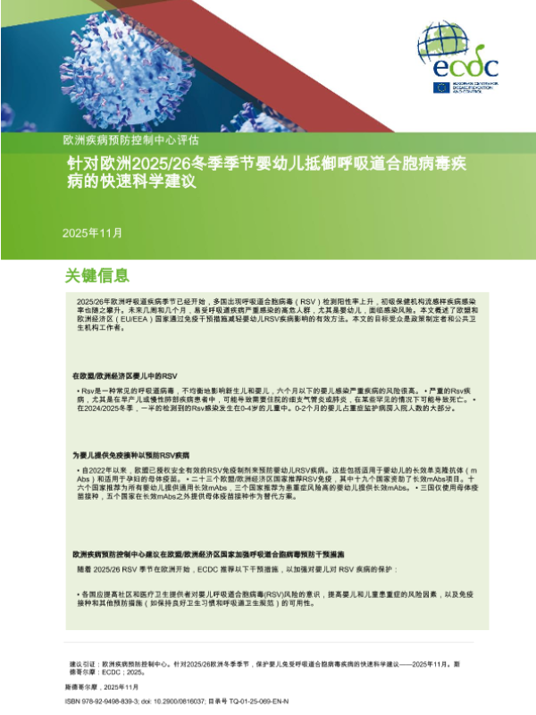 【欧洲疾病预防控制中心】【202511】针对2025/26欧洲冬季季节,保护婴儿免受呼吸道合胞病毒疾病的快速科学建议-18页